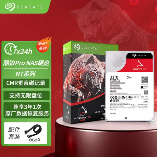 希捷(SEAGATE)酷狼PRO 7200转256MB SATA接口 CMR垂直 22TB ST22000NT001