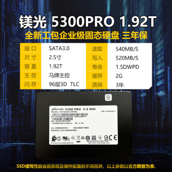 镁光固态硬盘5300PRO 960G 1.92T 3.84T 7.68T企业服务器SSD 全新镁光5300PRO-480G